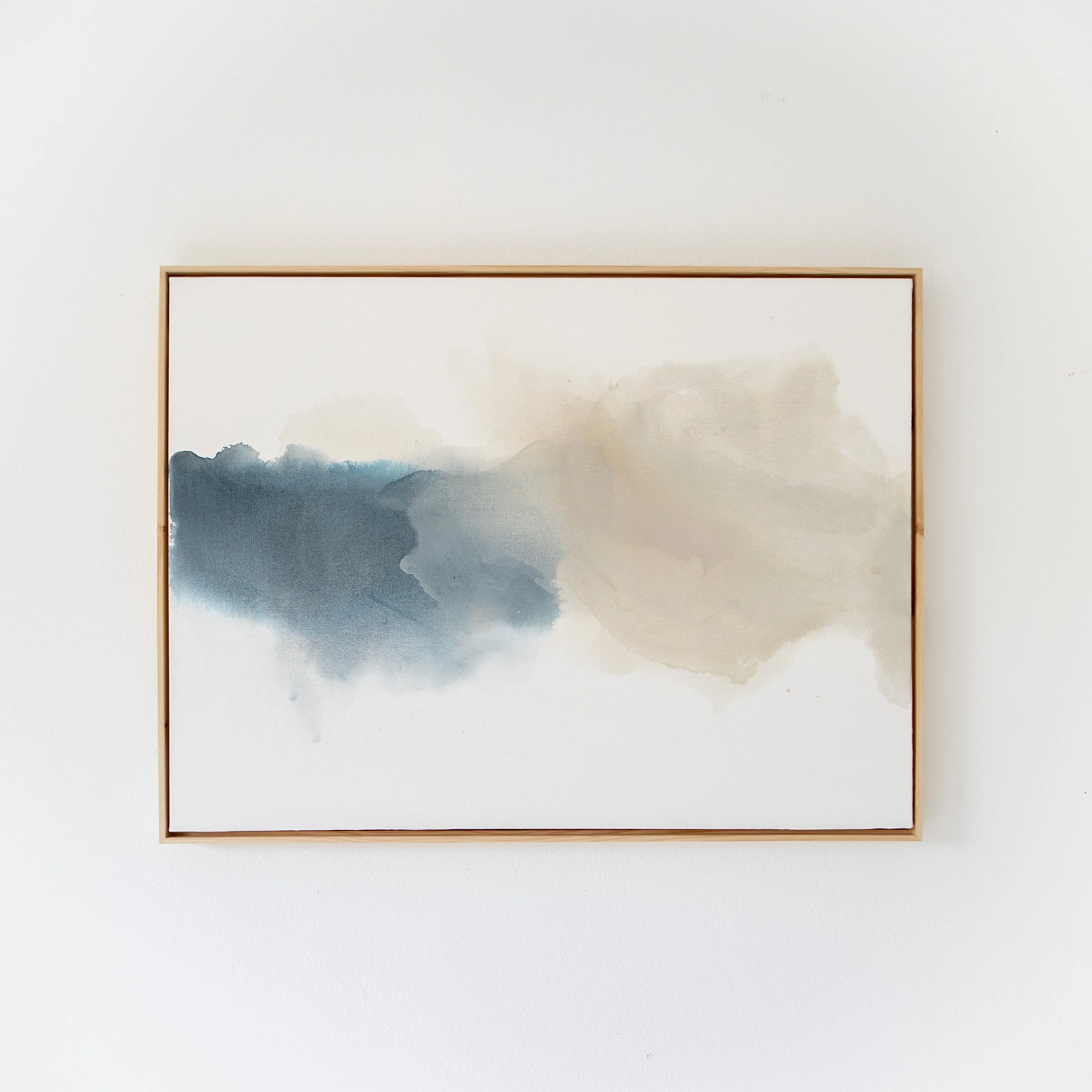 Acrylic inks and fluid acrylics on hand-stretched & primed canvas. Natural wood floater frame is included and hardware ready to hang.